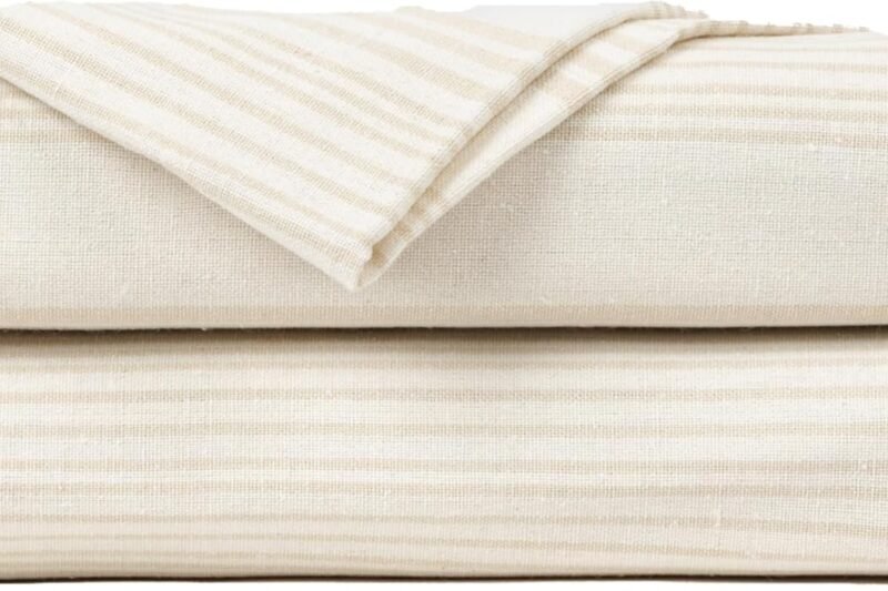 TRAMAS+ Tablecloths Rectangular Cotton Linen Look Table Runner for Home Dining Kitchen Patio Patio in 3 Sizes – Striped Natural, 200 x 140 cm