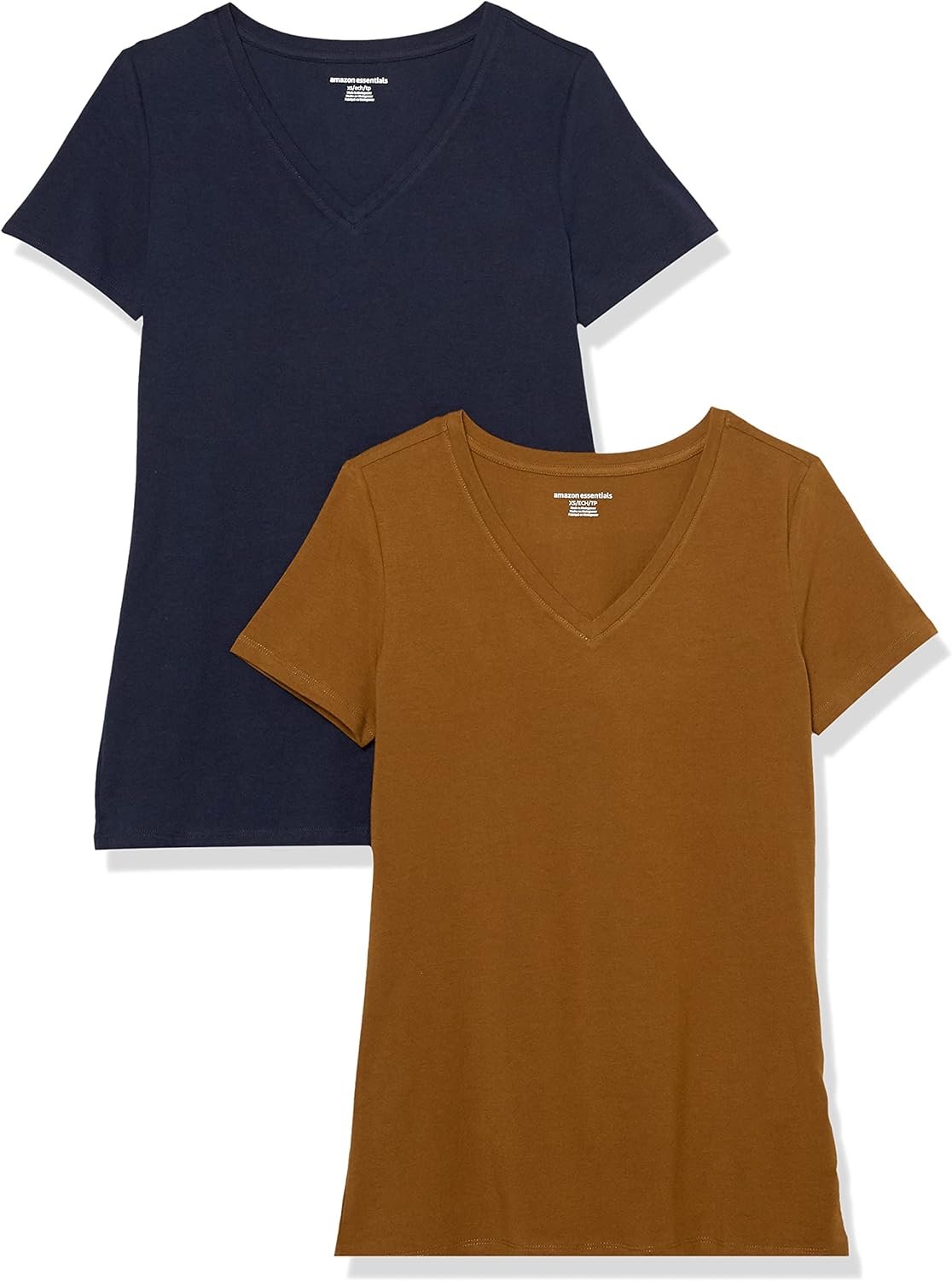 Amazon Essentials Women’s Regular Fit Short Sleeve V-Neck T-Shirt Multi-Pack