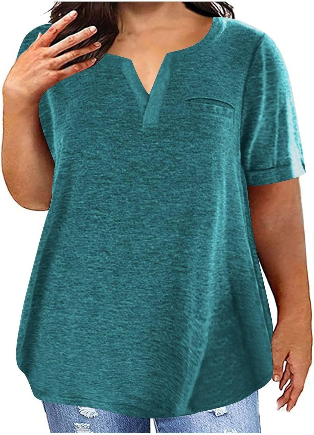 HOOUDO Plus Size Tops for Women Cut V Neck Short Sleeve Shirt Solid Color Oversized T Shirts Casual Loose Comfortable Blouses Blouse Off Shoulder Women