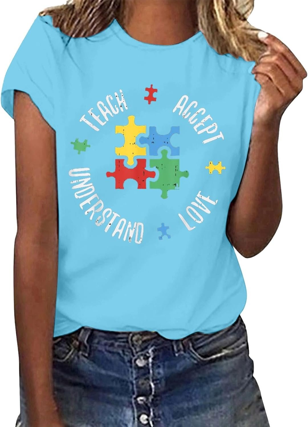 Das T-Shirt verfügt über einen klassischen Rundhalsausschnitt, der zusammen mit dem legeren Schnitt für eine angenehme Passform sorgt. Das Design ist ansprechend und modern, insbesondere die bedruckten Varianten, die einen besonderen Akzent setzen. Die Qualität des Materials wirkt insgesamt solide; es scheint eine Mischung aus Baumwolle und anderen Stoffen zu sein, was für atmungsaktiven Komfort sorgt. Außerdem ist das Oberteil als „pflegeleicht“ kategorisiert, was bedeutet, dass es in der Regel nicht gebügelt werden muss – ein großer Vorteil für vielbeschäftigte Frauen.