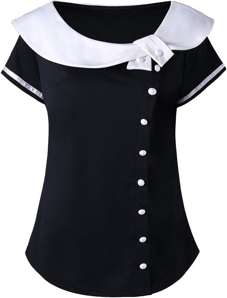 HOOUDO T-Shirt Tops Collar Plus Sleeve Two Women’s Shorts Pan Size Tone Fashion Plus Size Tops Sexy Women’s Large Sizes T Shirt Elegant Women’s Summer Shirt