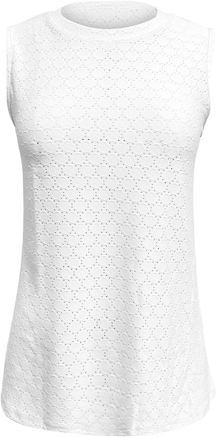 HOOUDO Tops Women’s V Neck Tank Top Sleeveless T Shirt Blouse Top Sleeveless Summer Blouse Sleeveless Crochet Summer White Undershirt Lace Cotton Hipster Long Loose Top Elegant Crop T-Shirt