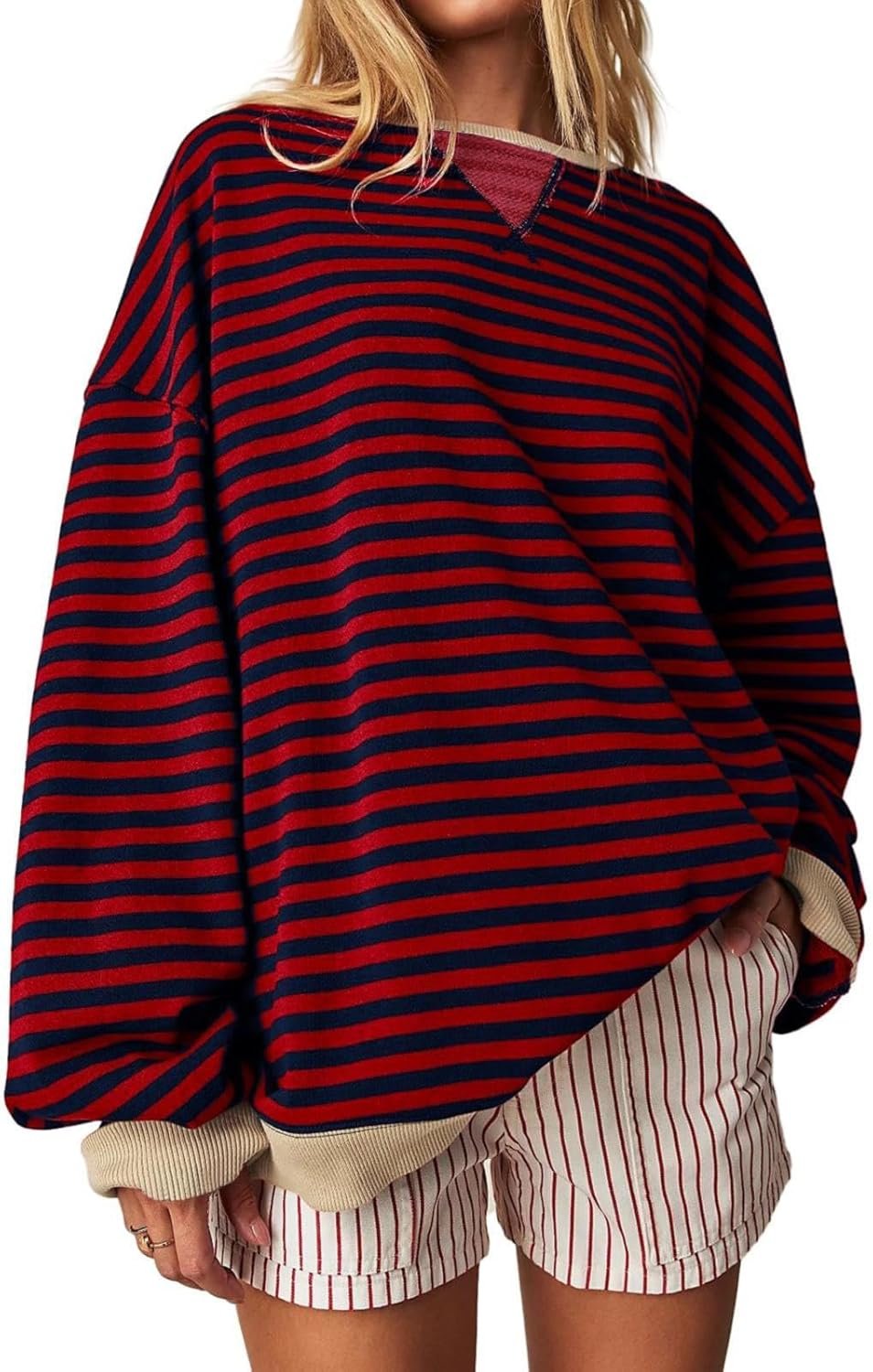 Produktbewertung: HOOUDO Damen Oversized Gestreifter Pullover