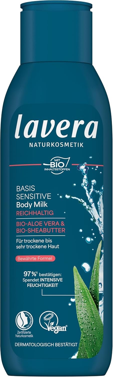 Ich möchte heute die Lavera Basis Sensitiv Body Milk Rich vorstellen, ein Produkt für natürliche Körperpflege, das mit Bio-Aloe Vera und Bio-Shea-Butter angereichert ist. Diese Körpermilch wird als intensive Feuchtigkeitspflege für trockene Haut beworben und hat mich vor allem aufgrund ihrer Bio-Zertifizierungen und veganen Inhaltsstoffe angesprochen.