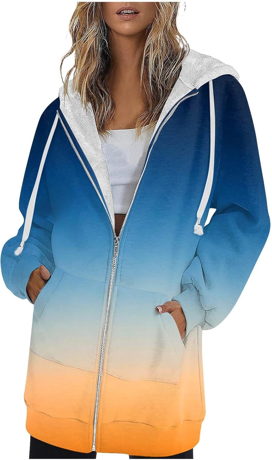 Die Jacke fällt sofort durch ihre ansprechende Farbverlauf-Gestaltung auf, die von sanften Tönen bis hin zu kräftigeren Farben reicht. Dieser Gradient verleiht der Jacke einen besonderen Touch und sorgt dafür, dass man in der Menge auffällt. Die Kapuze ist ein zusätzliches praktisches Element, das nicht nur für den Stil, sondern auch für die Funktionalität sorgt. Der durchgehende Reißverschluss ermöglicht ein einfaches An- und Ausziehen und sorgt dafür, dass die Jacke auch bei wechselhaftem Wetter getragen werden kann.