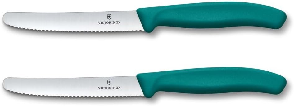 Victorinox Swiss Classic Breakfast Knife, Bread Knife Set, 2 Pieces, Sharp Blade, Serrated Edge, 11 cm, Stainless Steel, Green
