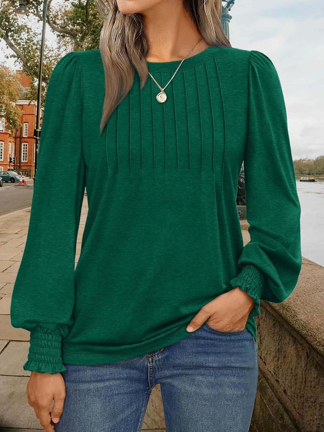 Das Damen Langarmshirt 2025 spiegelt aktuelle Modetrends wider, ohne dabei zu übertrieben zu wirken. Der elegante, aber lässige Stil ist ideal für Frauen, die Wert auf zeitlose Mode legen. Die Falten und der Smock-Effekt an den Ärmeln verleihen dem Shirt eine gewisse Raffinesse, während die schlicht gehaltenen Farben es ermöglichen, dass das Stück sowohl im Alltag als auch zu besonderen Anlässen getragen werden kann.